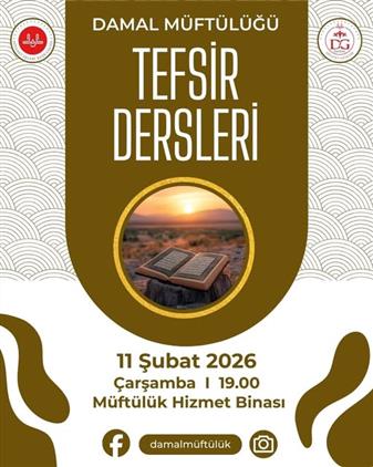 İlçe Müftülüğü Gençlik Koordinatörlüğü tarafından organize edilen ve her hafta çarşamba günleri yatsı vaktinde İlçe Müftümüz İbrahim AFACAN tarafından erkeklere yönelik olarak gerçekleştirilen "Tefsir Dersi"ne tüm kardeşlerimiz davetlidir.