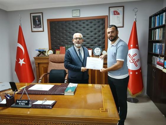 İlçe Müftümüz İbrahim AFACAN, Ramazan ve Kurban Bayramı ile acil durumlarda göstermiş olduğu üstün gayret ve özverili çalışma sebebiyle, Türkiye Diyanet Vakfı tarafından gönderilen teşekkür belgesini TDV Damal Şubesi Muvazzaf Memuru Murat REÇBER'e takdim etti.