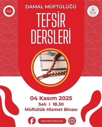 İlçe Müftülüğü Gençlik Koordinatörlüğü tarafından organize edilen ve her hafta salı günleri yatsı vaktinde İlçe Müftümüz İbrahim AFACAN tarafından erkeklere yönelik olarak gerçekleştirilen "Tefsir Dersi"ne tüm kardeşlerimiz davetlidir.
