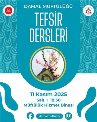 İlçe Müftülüğü Gençlik Koordinatörlüğü tarafından organize edilen ve her hafta salı günleri yatsı vaktinde İlçe Müftümüz İbrahim AFACAN tarafından erkeklere yönelik olarak gerçekleştirilen "Tefsir Dersi"ne tüm kardeşlerimiz davetlidir.